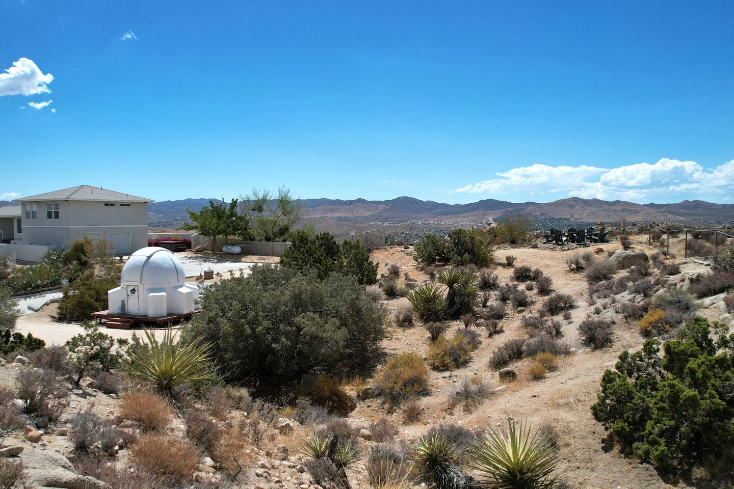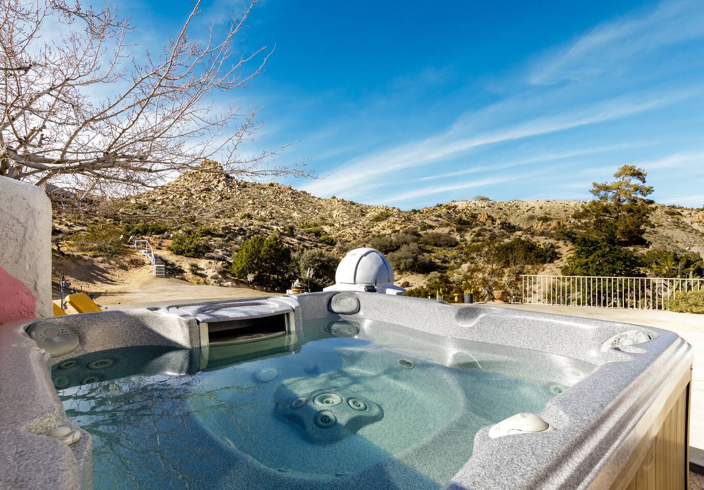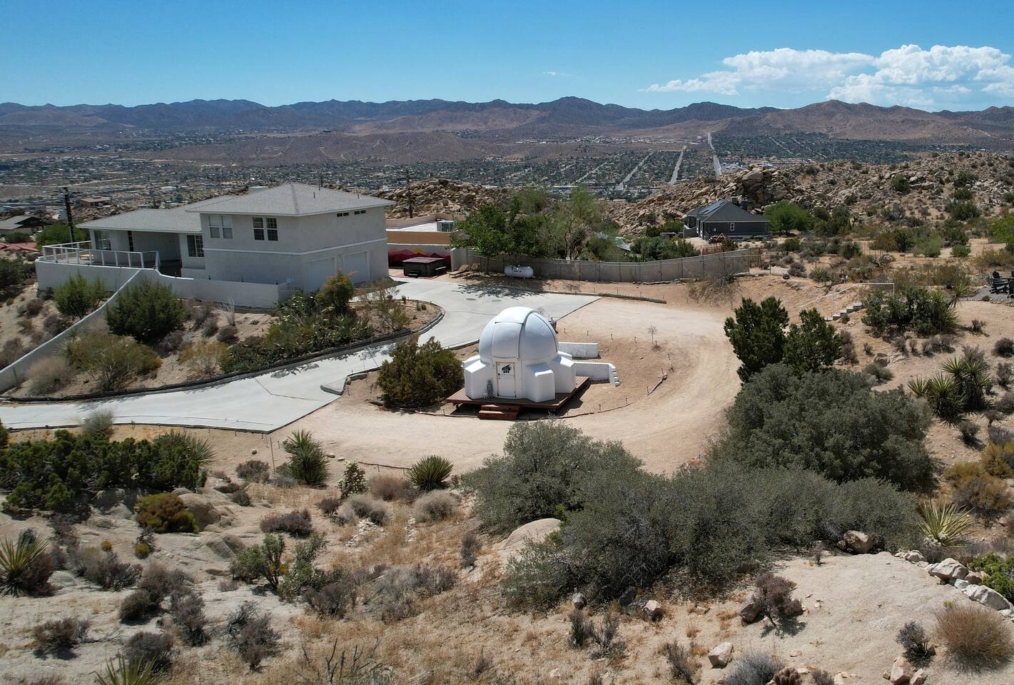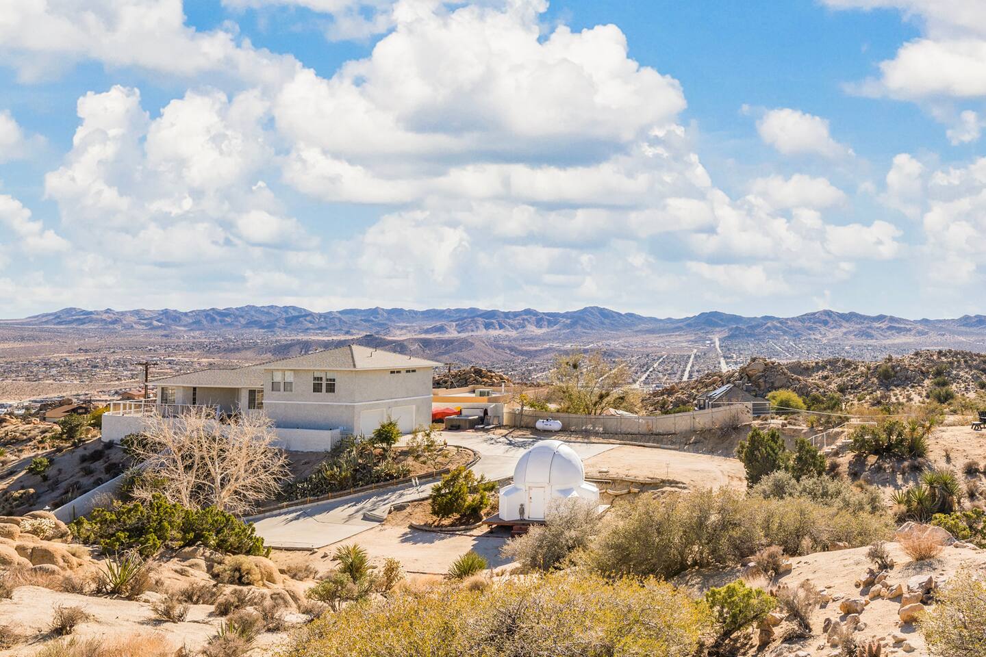 *Featured in Space Tourism Guide as one of the most amazing stargazing Airbnbs in the world!* *Featured on Airbnb's TikTok and LinkedIn as one of the most unique vacation rentals on Airbnb *Features the ONLY fully automated, guest-operated dome observatory stargazing experience in the USA! (Patent pending) *No astronomy experience required for professional telescope *Observatory Retreat provides the best stargazing experience in Joshua Tree. ◈ OBSERVATORY EXPERIENCE (Patent Pending)◈ Imagine a retreat where you are in control of your destination in space. Simply tap a celestial object on the computer touch screen and the dome and telescope will automatically rotate to give you front row seats to the universe. Featuring an innovative, futuristic design with custom lighting and sound system, the observatory brings an additional 110 sq. ft of space for your group’s ultimate stargazing galactic journey through space. This once-in-a-lifetime exclusive experience will bring space to you in a way that has never been done before at a vacation rental. Note: The observatory is a weather-dependent nighttime-only amenity. See weather criteria under “Guest Access.” The observatory features our exclusive software app (designed and coded by your hosts!) that makes the operation of the observatory a simple process. Just a few clicks and you'll be on your way to observing and learning about space like you never have before! ◈ BEDROOM CONFIGURATION◈ Bedroom 1: King with ensuite bathroom Bedroom 2: Queen with shared hallway bathroom Bedroom 3: Queen with shared hallway bathroom Indoor Game Room: Fold out queen couch ◈ OUTSIDE AMENTITIES◈ In addition to the observatory, there are plenty of amenities to enjoy outside including: * Hot Tub/Soak Pool - plenty of room for the whole group! Hot tub is heated 24/7 complete with jets and seats for 8. Let us know if you would like us to lower the temperature for you so that the hot tub becomes a soak pool. * Corn Hole * Bocce Ball * Dining on the Deck * Alien Scavenger Hunt * Fire Pit * Exploring our multi-level backyard that has the feel of Joshua Tree National Park Please follow us at @observatoryretreat. Excited to experience Observatory Retreat? Lock in your dates now before they’re gone! Still deciding? Tap the heart ❤ to save this listing and return anytime. Any questions? Please feel free to message us! Observatory Retreat is conveniently located near many activities in the Joshua Tree area: 20 min to Joshua Tree National Park 5 min to Local grocery stores and many restaurants 10 min to Pioneer Town 15 min to Integratron 35 min to Morongo Casino 40 min to Palm Springs International Airport 40 min to Cabazon Outlets **For nights with a minimum, we sometimes consider one-night stays on a case-by-case basis. Please inquire for more details.** Observatory Retreat is a private stargazing Airbnb in Joshua Tree area. Guests can enjoy the professional observatory and telescope, relax in the hot tub under the Milky Way, and experience the dark desert skies like nowhere else. STVR 66-22