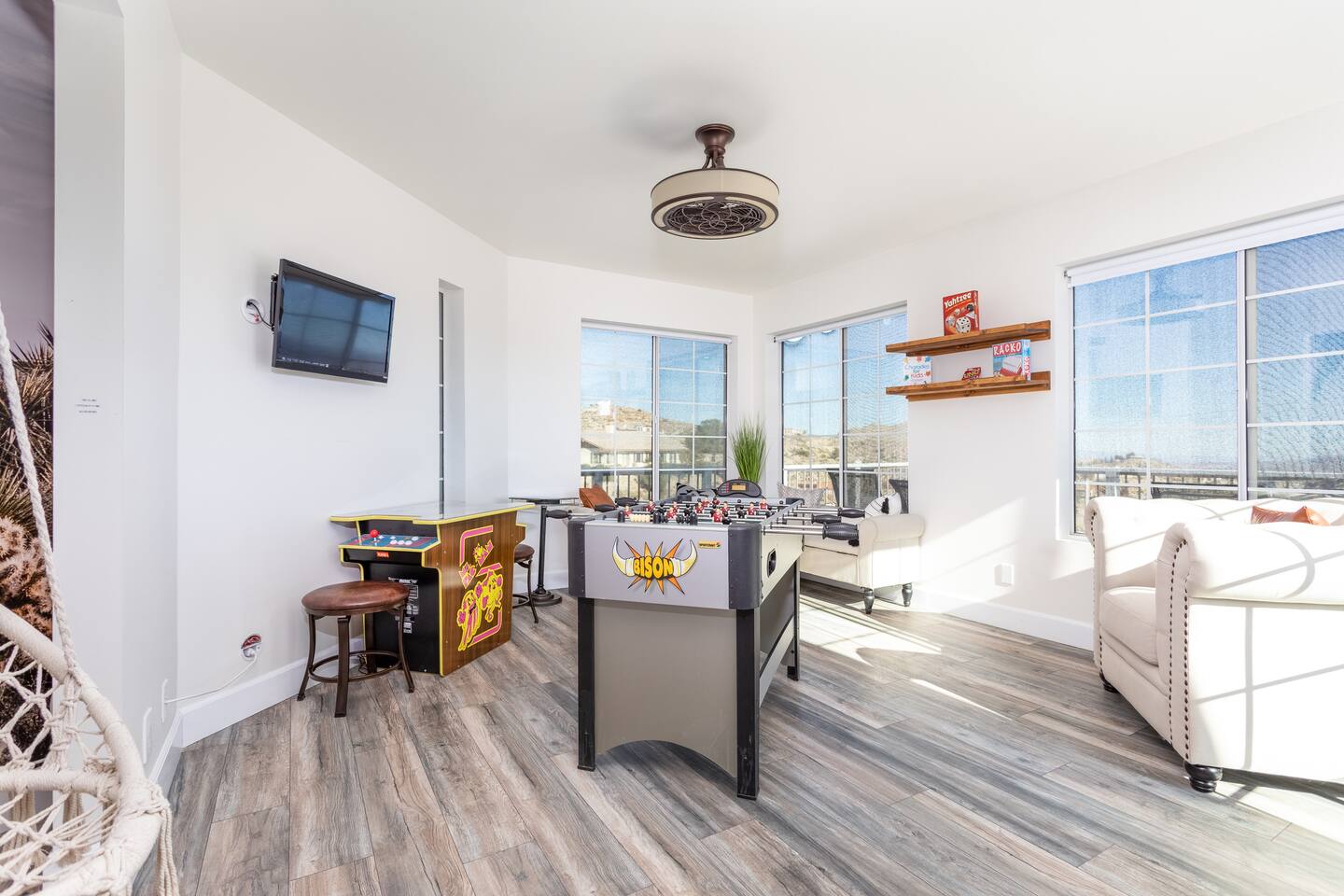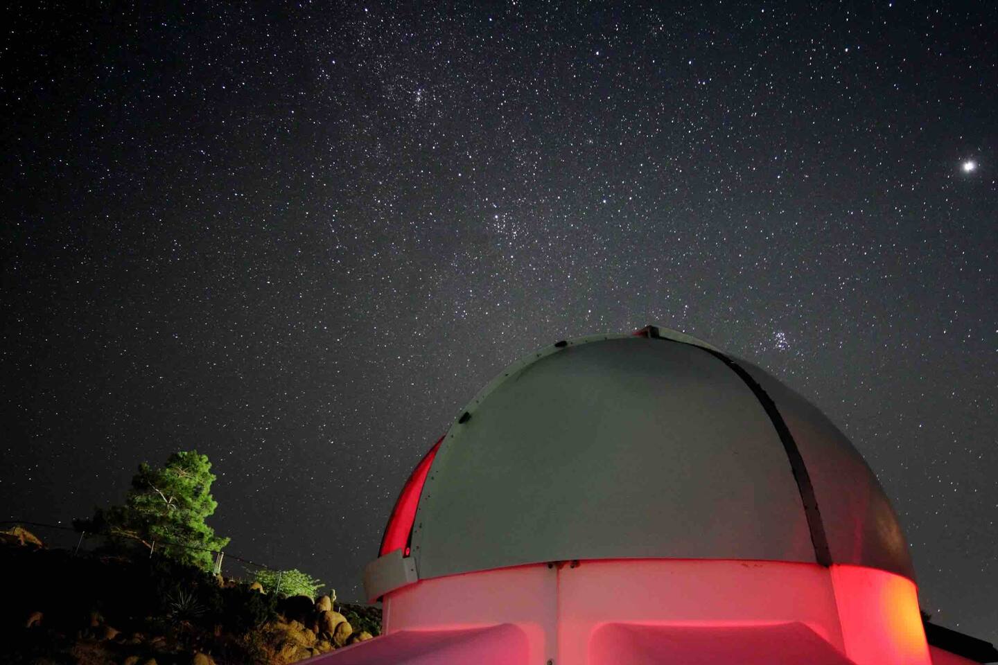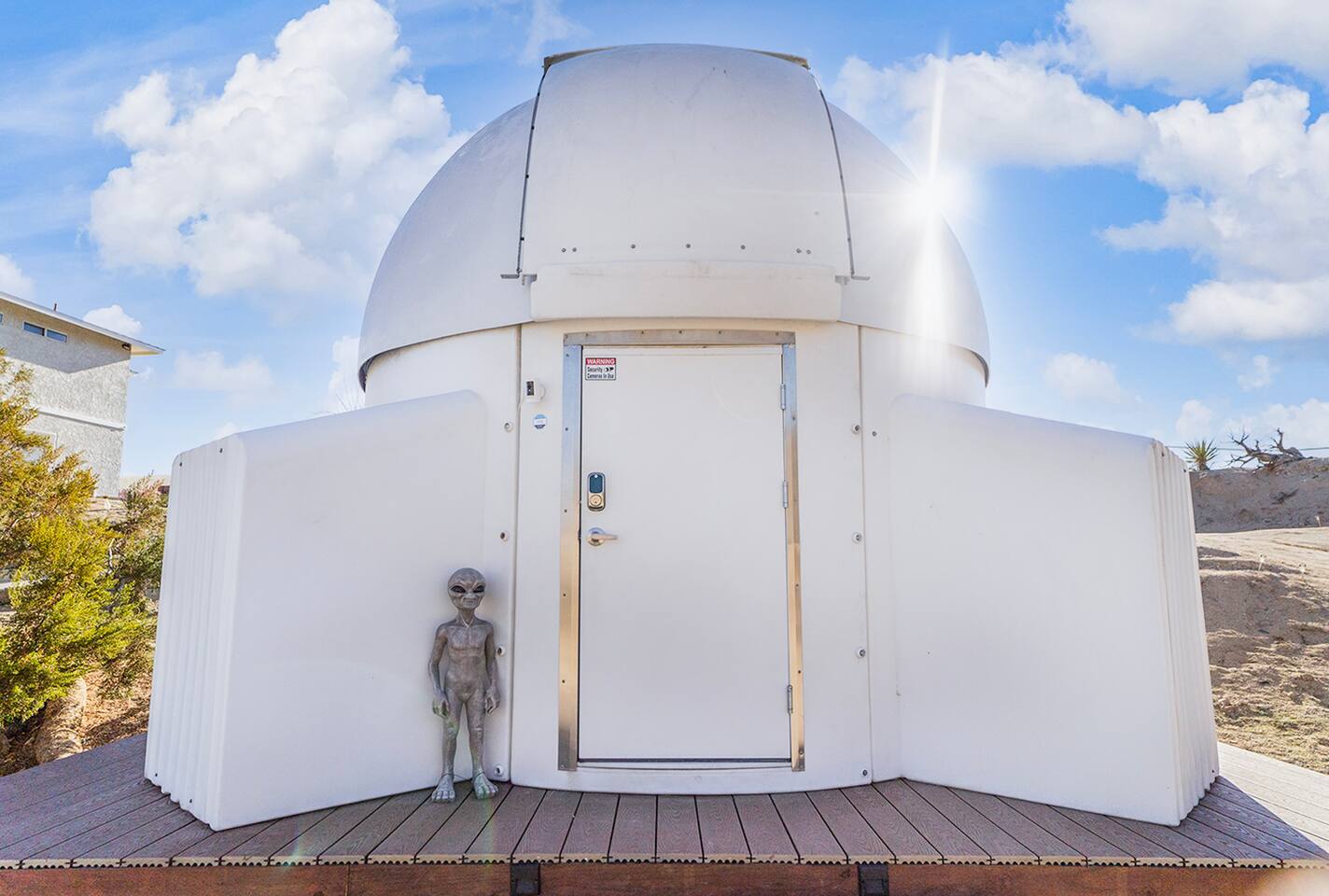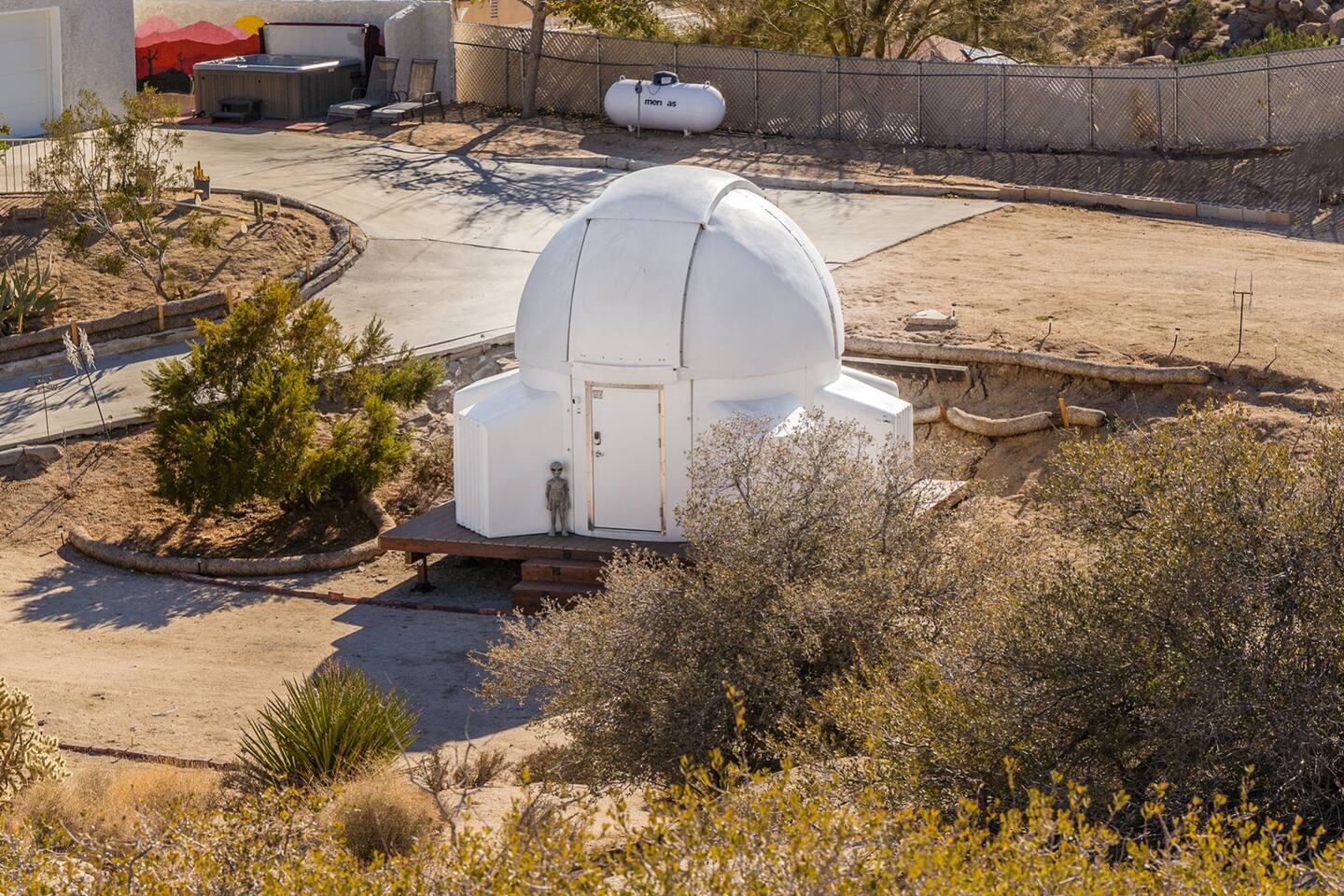 *Featured in Space Tourism Guide as one of the most amazing stargazing Airbnbs in the world!* *Featured on Airbnb's TikTok and LinkedIn as one of the most unique vacation rentals on Airbnb *Features the ONLY fully automated, guest-operated dome observatory stargazing experience in the USA! (Patent pending) *No astronomy experience required for professional telescope *Observatory Retreat provides the best stargazing experience in Joshua Tree. ◈ OBSERVATORY EXPERIENCE (Patent Pending)◈ Imagine a retreat where you are in control of your destination in space. Simply tap a celestial object on the computer touch screen and the dome and telescope will automatically rotate to give you front row seats to the universe. Featuring an innovative, futuristic design with custom lighting and sound system, the observatory brings an additional 110 sq. ft of space for your group’s ultimate stargazing galactic journey through space. This once-in-a-lifetime exclusive experience will bring space to you in a way that has never been done before at a vacation rental. Note: The observatory is a weather-dependent nighttime-only amenity. See weather criteria under “Guest Access.” The observatory features our exclusive software app (designed and coded by your hosts!) that makes the operation of the observatory a simple process. Just a few clicks and you'll be on your way to observing and learning about space like you never have before! ◈ BEDROOM CONFIGURATION◈ Bedroom 1: King with ensuite bathroom Bedroom 2: Queen with shared hallway bathroom Bedroom 3: Queen with shared hallway bathroom Indoor Game Room: Fold out queen couch ◈ OUTSIDE AMENTITIES◈ In addition to the observatory, there are plenty of amenities to enjoy outside including: * Hot Tub/Soak Pool - plenty of room for the whole group! Hot tub is heated 24/7 complete with jets and seats for 8. Let us know if you would like us to lower the temperature for you so that the hot tub becomes a soak pool. * Corn Hole * Bocce Ball * Dining on the Deck * Alien Scavenger Hunt * Fire Pit * Exploring our multi-level backyard that has the feel of Joshua Tree National Park Please follow us at @observatoryretreat. Excited to experience Observatory Retreat? Lock in your dates now before they’re gone! Still deciding? Tap the heart ❤ to save this listing and return anytime. Any questions? Please feel free to message us! Observatory Retreat is conveniently located near many activities in the Joshua Tree area: 20 min to Joshua Tree National Park 5 min to Local grocery stores and many restaurants 10 min to Pioneer Town 15 min to Integratron 35 min to Morongo Casino 40 min to Palm Springs International Airport 40 min to Cabazon Outlets **For nights with a minimum, we sometimes consider one-night stays on a case-by-case basis. Please inquire for more details.** Observatory Retreat is a private stargazing Airbnb in Joshua Tree area. Guests can enjoy the professional observatory and telescope, relax in the hot tub under the Milky Way, and experience the dark desert skies like nowhere else. STVR 66-22