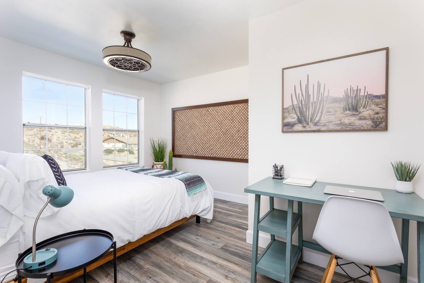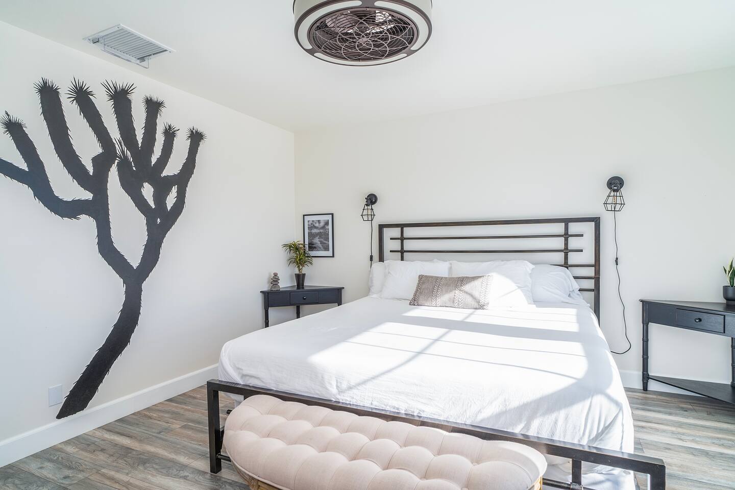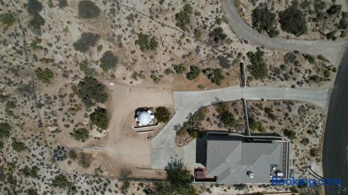 Up to two dogs are allowed and must be included in the reservation at time of booking. (The booking will automatically add the pet fee at time of reservation.) No other animals are allowed. The correct number of guests must be included in the reservation at time of booking. The pricing Airbnb shows you is dependent on the number of guests. If your group size changes before your check-in time, please modify reservation with the correct number of guests to avoid any issues with your reservation or access to the property. A level 2 EV charger is provided for guests’ convenience at rate of $0.50/kWh. Please message us for the access code. Yucca Valley is located in a dark skies friendly community, making it perfect for stargazing. There are three external cameras which have a view of the front gate, backyard driveway (does not show hot tub), and observatory entry for the safety of the guests and the property. These record audio and video 24/7. There are absolutely no internal cameras or recording devices. Reserved guests will receive access to our digital guidebook. It contains everything you need to know to have an amazing trip, including property information, local recommendations, best hikes in the area, and add-on services (i.e. private chefs, wellness providers).