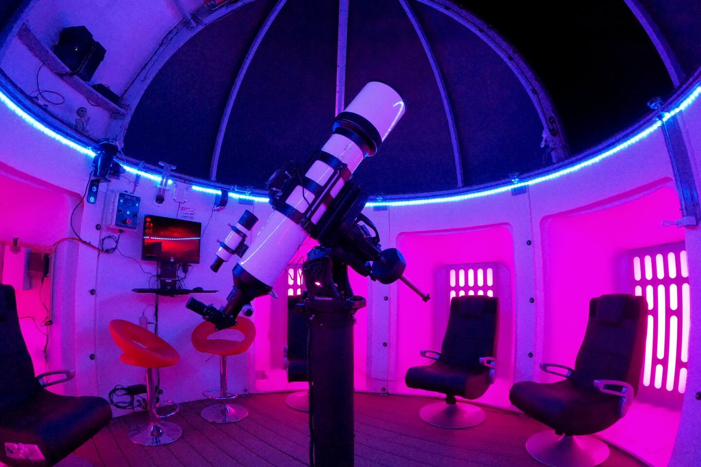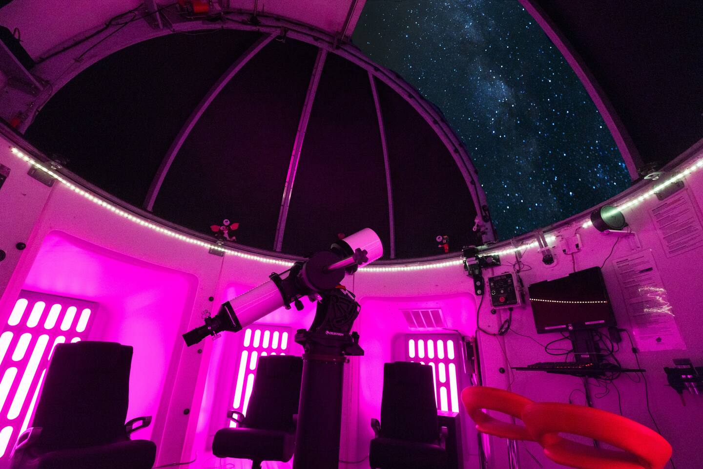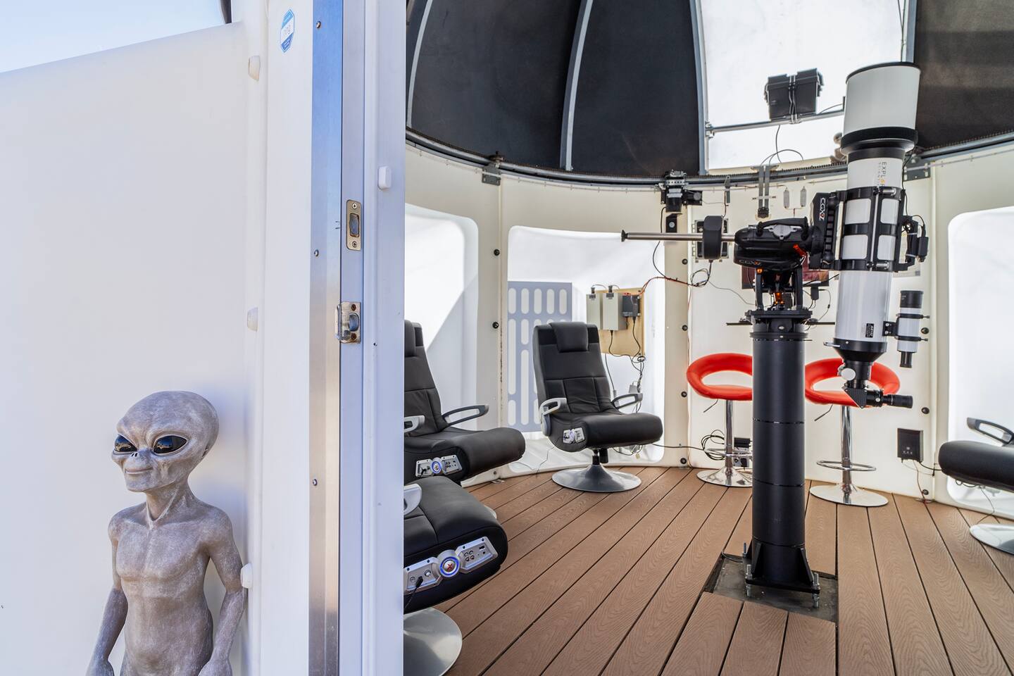 *Rare OMG! Airbnb* Featured by Airbnb in their media channels as one of the most unique stays in the world! Observatory Retreat is a first-of-a-kind, patent-pending experience that provides you exclusive access to a fully automated high-tech observatory! Observatory is a weather-dependent nighttime-only amenity. You’ll also enjoy all of the following: + Two game rooms + Hot tub under the stars + 360 deg. views + Outdoor games + Outdoor deck + Fire pit + L2 EV charger* + FAST wifi + Gated