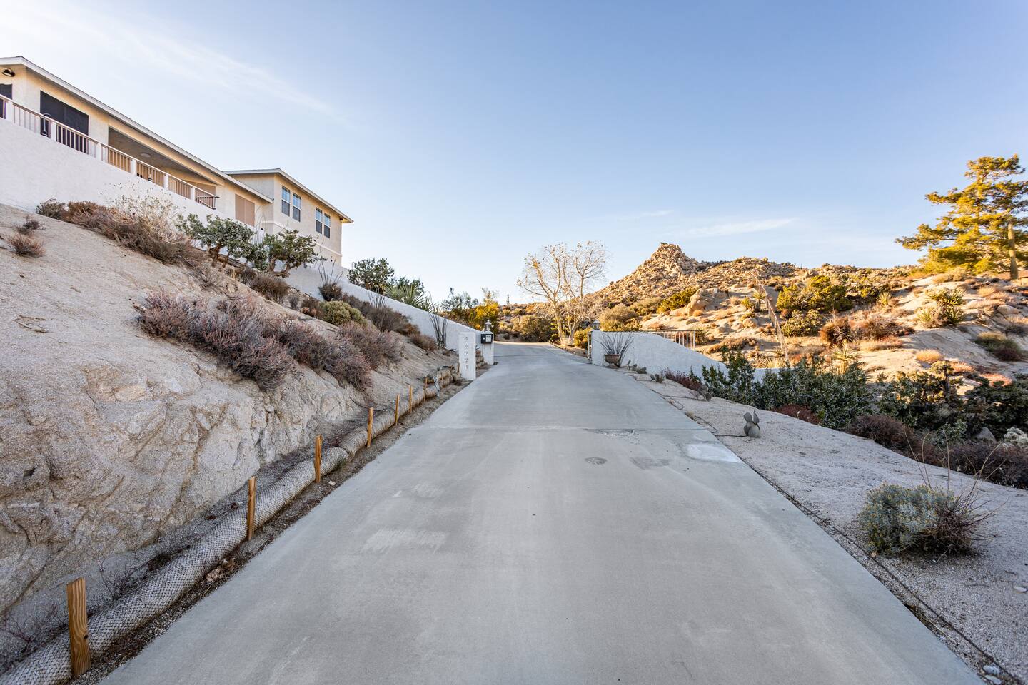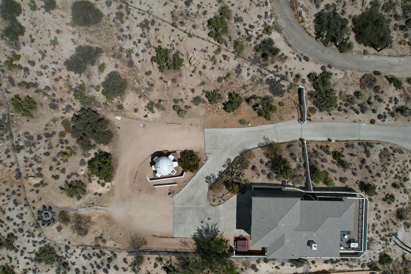 Observatory Retreat is tucked in a rocky hillside amongst other gorgeous homes. You have the advantage of the easy paved roads of a neighborhood with a feeling of seclusion in your sky-high desert retreat.